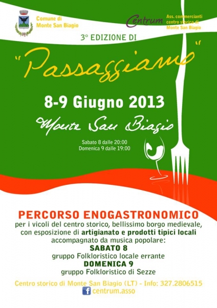 Stasera 8 giugno, e domani sera 9 giugno, nel centro storico di Monte San Biagio, si terrà la terza edizione dell'evento "Passaggiamo".