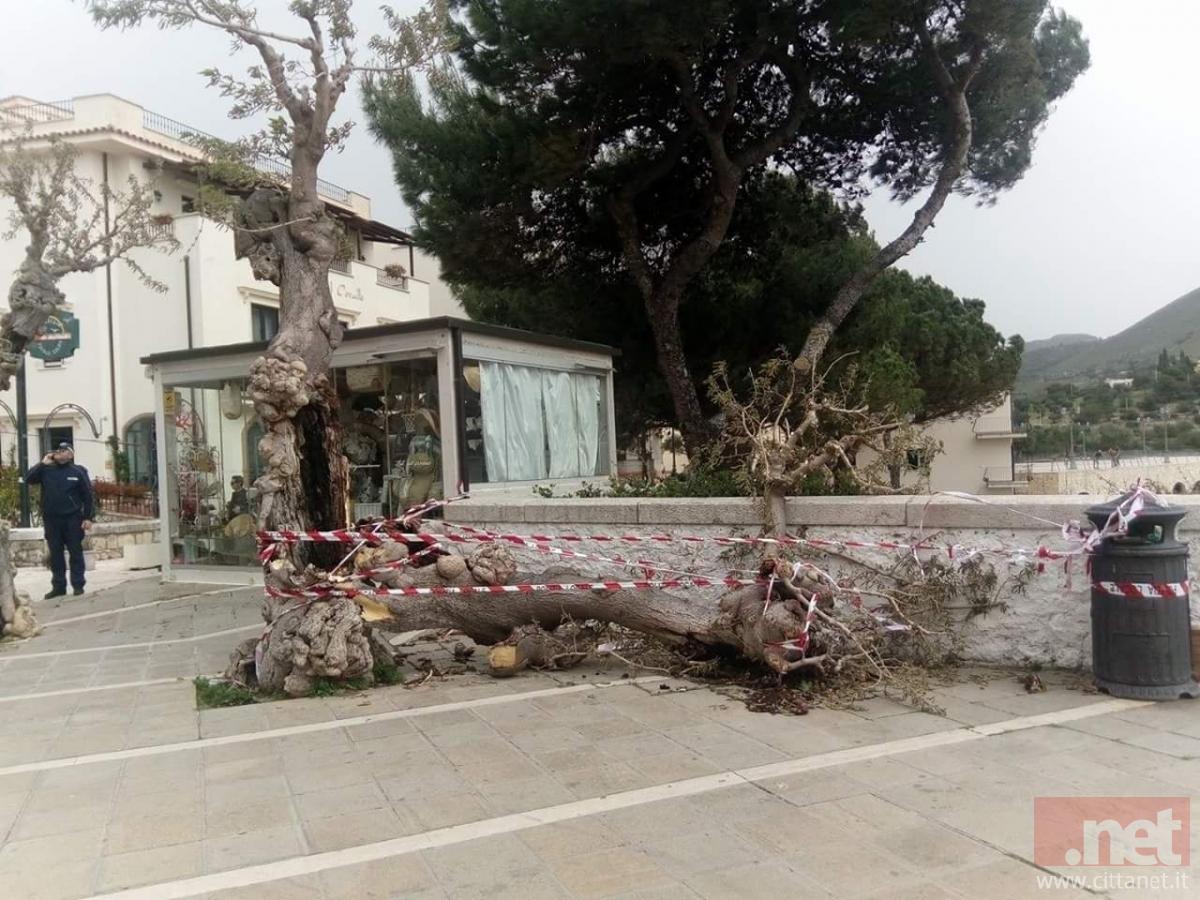 Sperlonga: le raffiche d vento abbattono un albero caratteristico lungo Corso San Leone