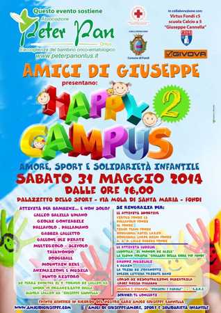 Come e più di quanto è avvenuto l'anno scorso l'Happy Campus sta muovendo persone che volontariamente e liberamente, stanno creando un evento di festa e felicità per tante persone e in particolare i ragazzi, che Giuseppe amava in maniera immensa.