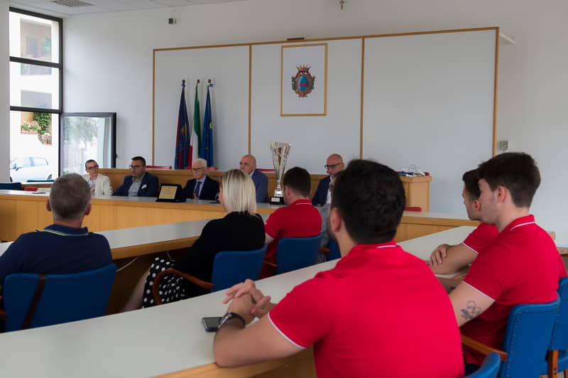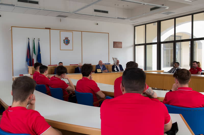 Nel pomeriggio di ieri, squadra e dirigenza, guidati dal presidente Marco De Meo, sono stati ricevuti presso l’Aula Consiliare “Luigi Einaudi”. A fare gli onori di casa, ovviamente, il Sindaco Beniamino Maschietto; insieme al primo cittadino anche il vice sindaco Vincenzo Carnevale e gli assessori Fabrizio Macaro e Sonia Notarberardino.