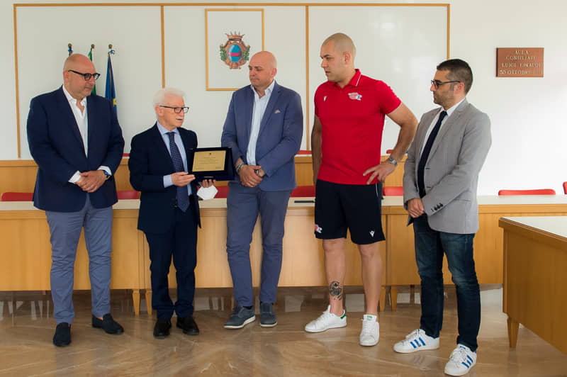 Al termine dell’incontro il presidente De Meo ha ricevuto dal Sindaco una targa "per aver portato la squadra nella massima serie e per aver vinto la Coppa Italia, dando lustro allo sport fondano e all'intera città". La società rossoblù, attraverso le parole di tutti gli intervenuti, ha potuto spiegare quanto fosse importante voler regalare questa soddisfazione al magnifico pubblico rossoblù e a tutta la città che, da oltre cinquant’anni, vive di pallamano.