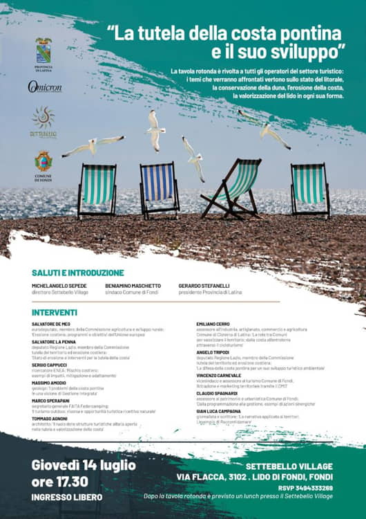 Cosa causa l’erosione delle coste? Come reagire e arginare il fenomeno? E come disegnare lo sviluppo turistico della costa pontina? Questi alcuni dei temi che verranno affrontati nell'ambito della tavola rotonda “La tutela della costa pontina e il suo sviluppo”, organizzata dall’agenzia di comunicazione Omicron, con il patrocinio del Comune di Fondi e della Provincia di Latina.