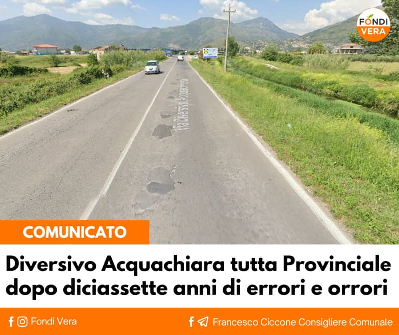 “Mi ha sorpreso la tempestività, per così dire, con cui quest’Amministrazione Comunale ha avviato a Dicembre 2021 l’iter per riconsegnare nelle mani della Provincia di Latina, poco prima dell’elezione del suo nuovo Presidente tra l’altro, la competenza del tratto di Via Diversivo Acquachiara che collega Via Appia lato Monte San Biagio al cavalcavia limitrofo all’area di Viale Piemonte, per il solo asse viario.