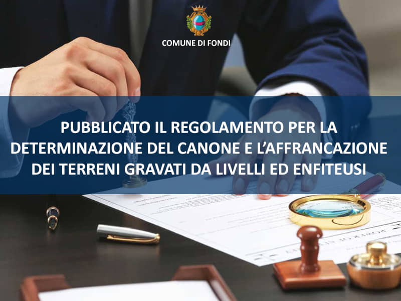 In fase di prima applicazione – recita testualmente il regolamento - il servizio tecnico curerà la ricognizione dei terreni per i quali il Comune di Fondi risulti essere “concedente”, l’individuazione dei livellari, la quantificazione del canone e del capitale di affranco, nonché la richiesta di pagamento del canone. Successivamente comunicherà annualmente, all’ufficio finanziario, le variazioni intervenute.