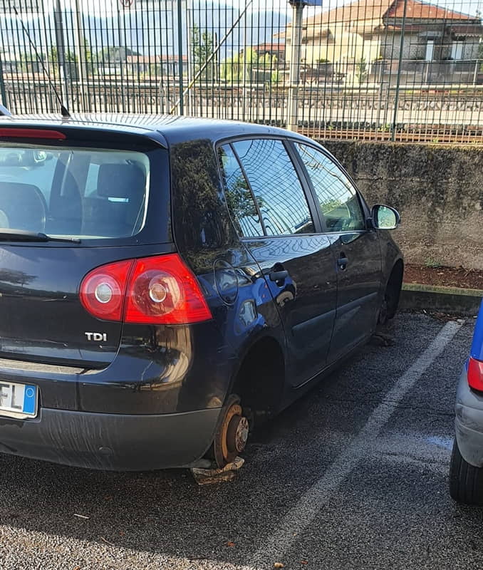 Un'altra auto nella stazione di Fondi ha avuto un grave danno: sono state tolte le ruote in pieno giorno, nell’indifferenza di chi si trovava. Già precedentemente Azione aveva segnalato il degrado della stazione di Fondi, ma a questo punto non parliamo di un soffitto cui è caduto un po' di intonaco o di una casa ridotta a uno scheletro che presenta un brutto biglietto da visita per la città , ma della sua sicurezza. - Questa è dichiarazione indignata di Paolo de Bonis, referente di Fondi in Azione - Non è possibile che simili cose non solo avvengano, e che si ripetano dopo pochi giorni. Il Sindaco, in qualità di responsabile dell'ordine pubblico intervenga al più presto facendo un servizio di controllo mediante servizi di pattugliamento eventualmente concordandoli con Polizia e Carabinieri e al più presto ponga telecamere per un controllo reale del territorio.