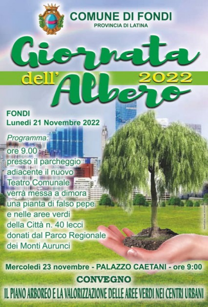 Mentre negli istituti scolastici di ogni ordine e grado si imparano filastrocche, si ripassano i processi della fotosintesi clorofilliana e si studiano i benefici sull’ambiente dei giganti verdi, il Comune di Fondi lavora all’organizzazione di uno degli appuntamenti più importanti dell’anno: la Giornata Nazionale dell’Albero. La ricorrenza, che si celebra il 21 novembre in tutta Italia, sarà festeggiata con un piccolo ma significativo evento in programma lunedì a partire dalle 9:00 nel grande parcheggio di via Mola di Santa Maria.