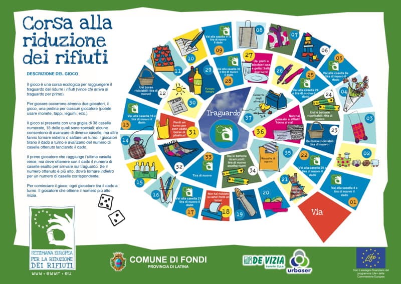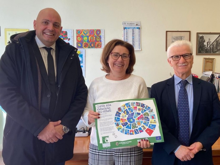 Nei giorni scorsi il sindaco di Fondi Beniamino Maschietto e l’assessore all’Ambiente Fabrizio Macaro hanno consegnato agli studenti della città un simpatico gioco dell’oca pensato per far imparare e ripassare alcuni accorgimenti finalizzati a ridurre i rifiuti.