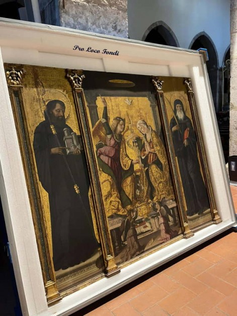 Per questa importante esposizione sono state scelte alcune delle opere più belle e rappresentative del patrimonio artistico italiano. Ed uno di questi capolavori è partito proprio da Fondi. Si tratta del trittico dell'Annunciazione di Cristoforo Scacco del 1499.