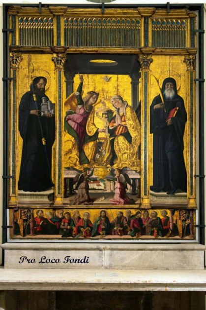 Ma non si tratta solo di un'opera d'arte di inestimabile valore. Ad essa i fondani sono emotivamente molto legati perché ai lati della scena dell'Annunciazione sono stati rappresentati due santi molto importanti per il territorio: il patrono di Fondi, Sant'Onorato, che stringe tra le mani una miniatura del Castello Caetani in segno di protezione e San Mauro monaco e martire che fu patrono di Fondi prima di Sant'Onorato.