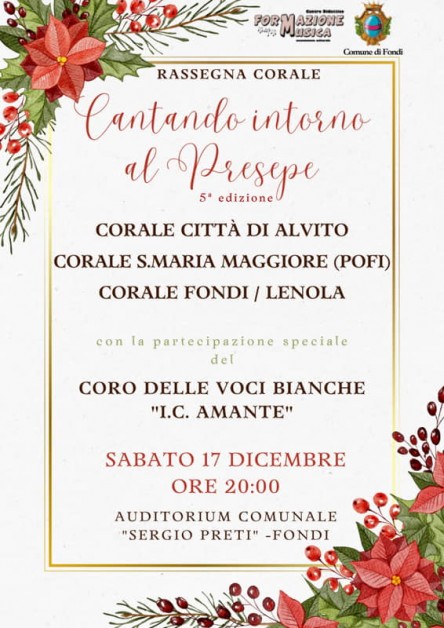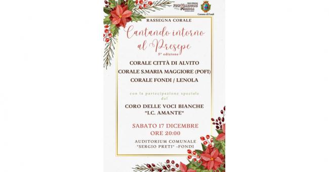 Tutto pronto a Fondi per la tradizionale rassegna corale “Cantando intorno al presepe”, ormai giunta alla sua quinta edizione. Anche quest’anno l’evento canoro vedrà la partecipazione delle voci bianche dell’Istituto comprensivo Enrico Amante.