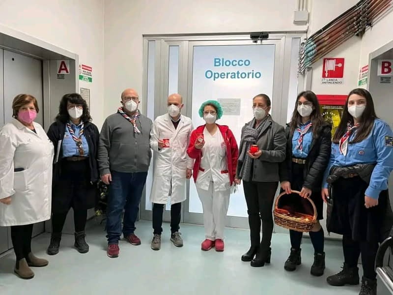Come ogni tesoro donato da Dio si moltiplica solo donandolo. Lo scopo di questa luce è di illuminare i luoghi bui e le persone che hanno bisogno di tanta speranza. In questo periodo in cui si rischia di tingere tutto di grigio la luce ha lo scopo di riportare il colore. Per questo motivo ieri mattina con una rappresentanza del gruppo Scout, insieme al nostro Assistente don Antonio, siamo andati presso l'ospedale "San Giovanni di Dio" a Fondi e abbiamo consegnato la luce nei vari reparti, alle persone ricoverate, ai volontari dell'AVO, al personale di sorveglianza, ai medici e agli infermieri. grazie di Cuore al direttore sanitario Dott. Fabrizio Turchetta e alla responsabile della segreteria della direzione Signora Paola Izzi che ci hanno accompagnati per tutto il percorso.