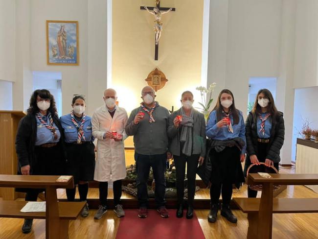 Nella Basilica della natività a Betlemme c'è una lampada che arde 24 ore su 24. Da quella lampada, su iniziativa degli Scout, la luce viene diffusa nel mondo intero. In Italia arriva con il treno e il nostro gruppo Scout Fondi2 l'ha ricevuta in dono alla stazione di Formia.