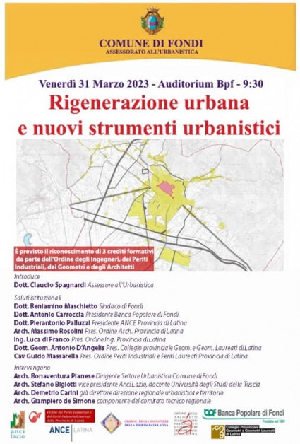 Come preannunciato nel corso del Consiglio comunale dello scorso 28 dicembre 2022, l'assessorato all'Urbanistica del Comune di Fondi ha organizzato un incontro volto ad illustrare alla collettività le opportunità sulla rigenerazione urbana e, in particolare, sull'articolo 3 della Legge Regionale n.7 del 18 luglio 2017.