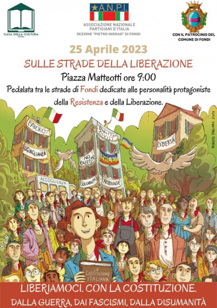 Dopo l'apprezzamento e la partecipazione delle scorse edizioni, torna “Sulle strade della liberazione”, la pedalata organizzata dalla sezione Pietro Ingrao di Fondi dell'Anpi con il patrocinio del Comune di Fondi e della Casa della Cultura in occasione del 25 aprile. I partecipanti avranno la possibilità di esplorare la città in sella alle loro due ruote seguendo un particolarissimo itinerario che toccherà le strade intitolate ai protagonisti della Resistenza e della Liberazione.