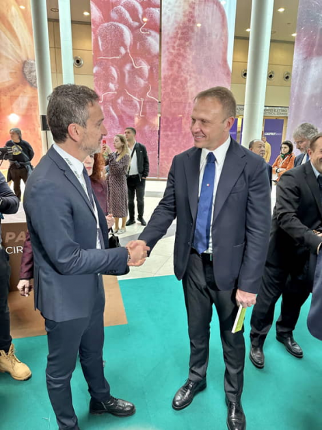 L'importante stretta di mano tra il direttore e il ministro Lollobrigida e la visita allo stand Mof di alcune delle più importanti personalità del comparto, come Pallottini e Di Pisa