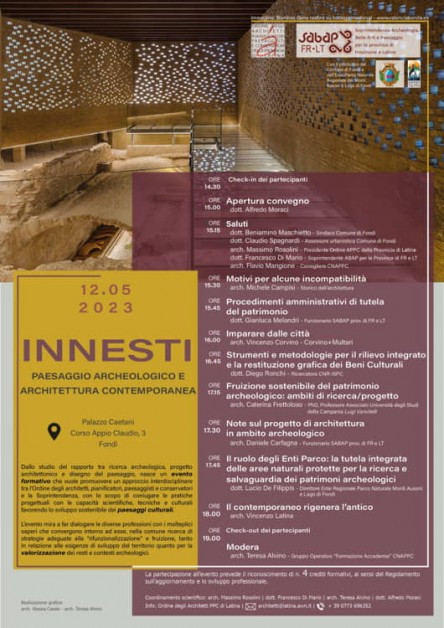 Paesaggio archeologico e architettura contemporanea: questi i temi del convegno “Innesti” che si terrà venerdì 12 maggio a Palazzo Caetani.