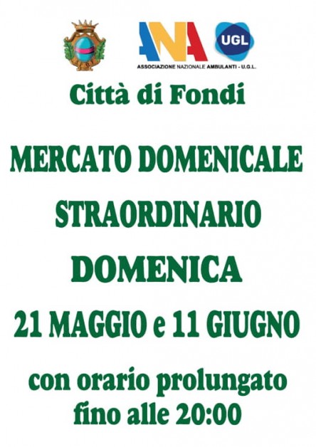 Nelle varie giornate di sperimentazione - spiegano il sindaco di Fondi Beniamino Maschietto e l'assessore alle Attività Produttive Stefania Stravato – abbiamo raccolto molti pareri positivi tanto da parte dei commercianti quanto da parte degli acquirenti. Moltissimi anche gli avventori provenienti dai comuni limitrofi, persino dalla vicina provincia di Frosinone, e questo movimento fa bene all'economia cittadina oltre che mercatale. Da qui l'idea di ripetere l'iniziativa.
