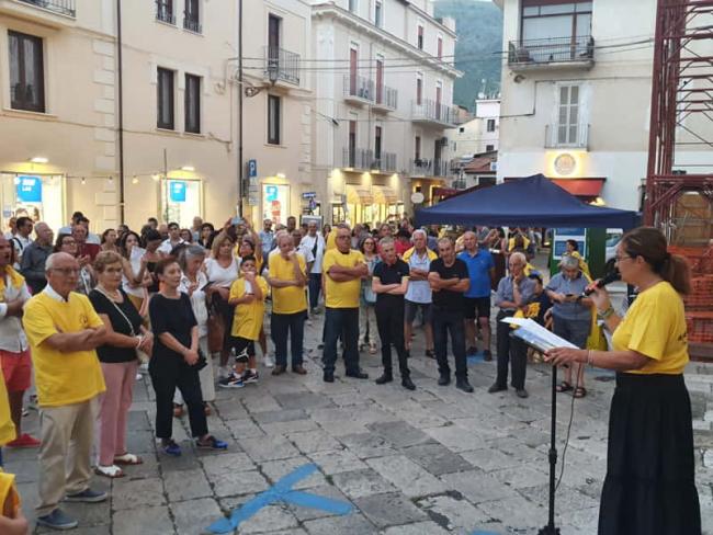 Un bel colpo d'occhio, colorato di giallo dalle t-shirt che il Comitato ha regalato ad ogni Cittadino che ha firmato la Petizione con cui da mesi chiede al Sindaco la revoca del Progetto di realizzazione di un impianto di cremazione adiacente al Cimitero Comunale.