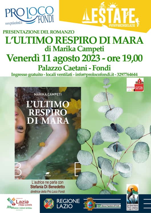 L’autrice Marika Campeti incontra il pubblico nell’anteprima nazionale a Fondi, parlandone con la direttrice della Pro Loco Fondi Stefania Di Benedetto, coinvolgendo i sentimenti e la curiosità nella splendida e storica sala del Palazzo Caetani Colonna. L’ingresso è gratuito e i locali ventilati.