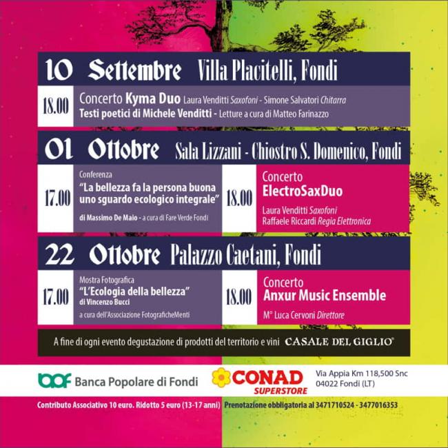 La rassegna è patrocinata dell'Ente Parco Regionale Naturale Monti Ausoni e Lago di Fondi e dal Comune di Fondi.