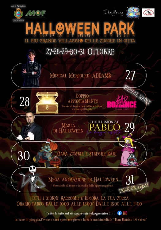 Il Parco Nicholas Green si tinge di arancione in occasione di Halloween. Dal 27 al 31 ottobre tra segnaletica orizzontale, corsie e cartelli prenderà infatti vita il più grande villaggio delle zucche mai realizzato in città con presenze spettrali ma anche e soprattutto con tantissime attività ludiche.