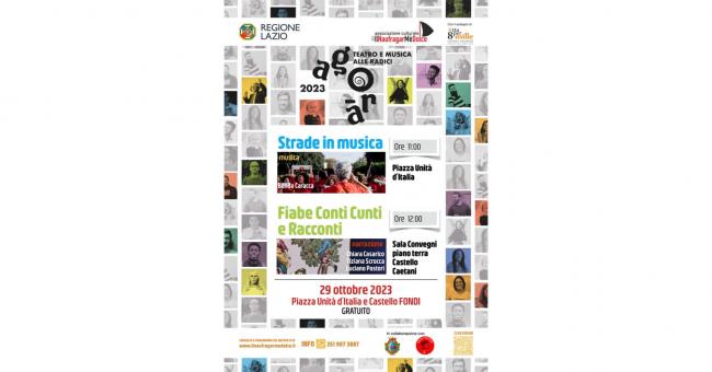La seconda tappa della rassegna è Fondi, il 29 ottobre inizia in piazza Unità d'Italia con la banda Caracca che in un concerto itinerante colorerà di suoni e coreografie il centro città e continuerà nella sala al piano terra del Castello Caetani con Fiabe Conti Cunti e racconti liberamente ispirati alle opere di Italo Calvino. Entrambi gli spettacoli sono consigliati ad un pubblico dai 6 ai 99 anni!