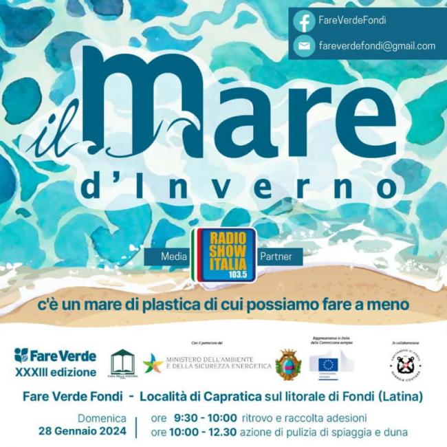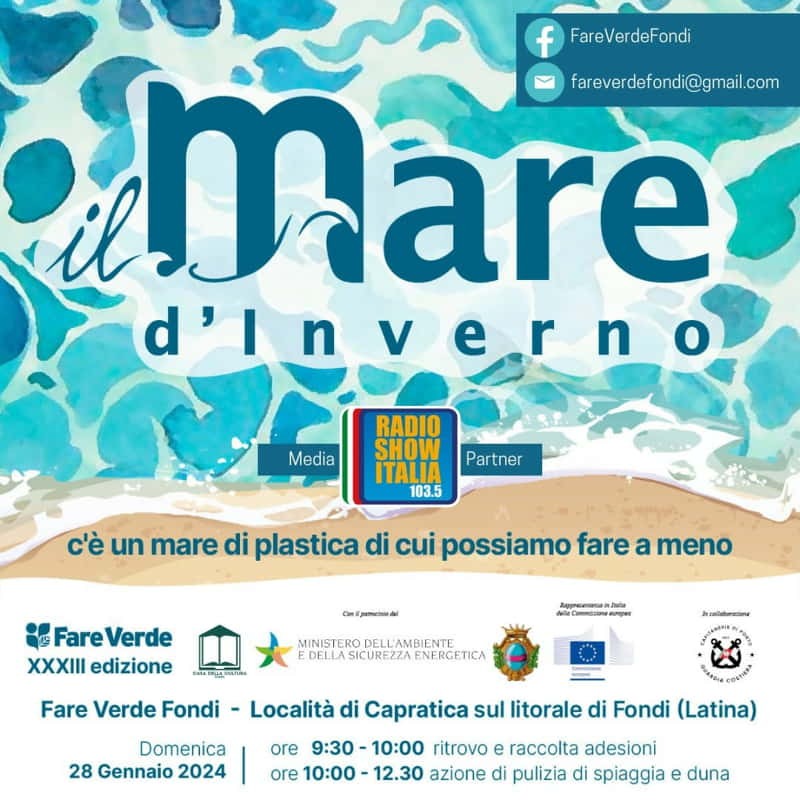 Si rinnova anche quest’anno l’appuntamento con “Il Mare d’Inverno”, storica manifestazione nazionale dell’Associazione di Protezione Ambientale “Fare Verde”, giunta nel 2024 alla sua XXXIII Edizione. I Volontari dei vari gruppi locali saranno nuovamente impegnati in operazioni di pulizia di spiagge italiane per ricordare a tutti che l’inquinamento dei litorali è un problema che esiste per dodici mesi all’anno e non solo durante il periodo estivo.