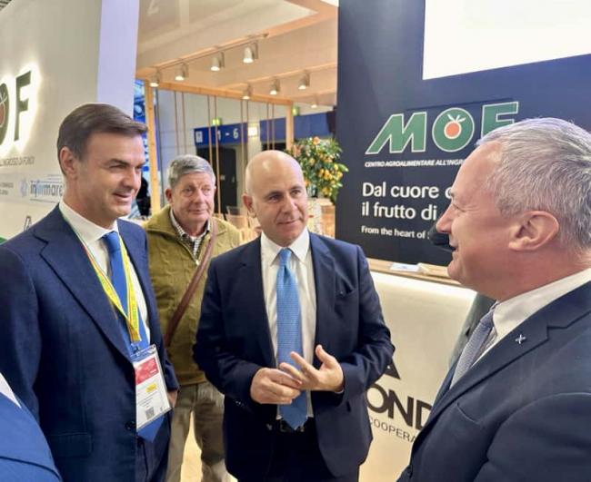 Tra gli ospiti di un’altra importante giornata per il MOF, in attesa della conclusione dell’edizione 2024 di Fruit Logistica, anche l'ambasciatore italiano a Berlino, Armando Varricchio, e Ettore Prandini, presidente nazionale Coldiretti, a testimonianza dell’attenzione che si riserva alle sfide e alle opportunità legate al settore agroalimentare in Europa, sottolineando l'importanza di strategie collaborative per affrontare le sfide globali, come i cambiamenti climatici, la sostenibilità e la sicurezza alimentare. La presenza del MOF all’edizione 2024 della kermesse berlinese ha evidenziato l’importanza della partnership tra il “gigante di viale Piemonte”, la Camera di Commercio Frosinone Latina, l’azienda speciale Informare e la Banca Popolare di Fondi, oltre che delle aziende che hanno presentato i prodotti di punta del territorio, Agripeppe, AOP Csc Lazio, Del Prete, Eureka, Forcina Marco & C, Ortofrutticola Magliozzi, Silvana Frutta e Vaccaro Gino.