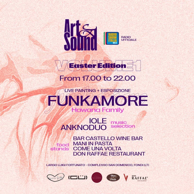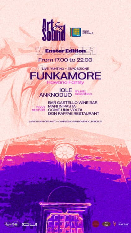Durante l’evento gli spettatori avranno modo di vedere in azione l'eclettico e talentuoso artista romano Funkamore del collettivo “hawana family” che darà vita ad un live painting ed esporrà alcune tra le sue opere, il tutto accompagnato dalla musica degli Anknoduo il duo locale composto dal dj Raffaele Martusciello e il tastierista Gino Di Fazio. Questi ultimi nel loro progetto musicale uniscono infatti l’arte del deejaying a un esibizione live tramite tastiera con sonorità che si preannunciano prettamente elettroniche. Nel pomeriggio si avrà modo di ascoltare anche l’esordio del collettivo “direct corrent crew” con la selezione musicale dell’artista Iole. All’interno dell’evento ci sarà possibilità di degustare pietanze enogastronomiche tra cui vini aperitivi e primi piatti promossi dalle attività locali presenti. In particolare gli stand aderenti saranno: “Come una volta”, “Bar castello Wine bar”, “Don raffaé restaurant”, “Mani in pasta”.
