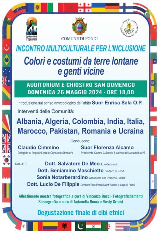 L'evento, organizzato e promosso dal centro culturale “Il Cortile dell'Aquinate” e dal Comune di Fondi con la collaborazione attiva del delegato del sindaco ai rapporti con le comunità straniere Claudio Cimmino, si terrà domenica 26 maggio a partire dalle ore 18:00.