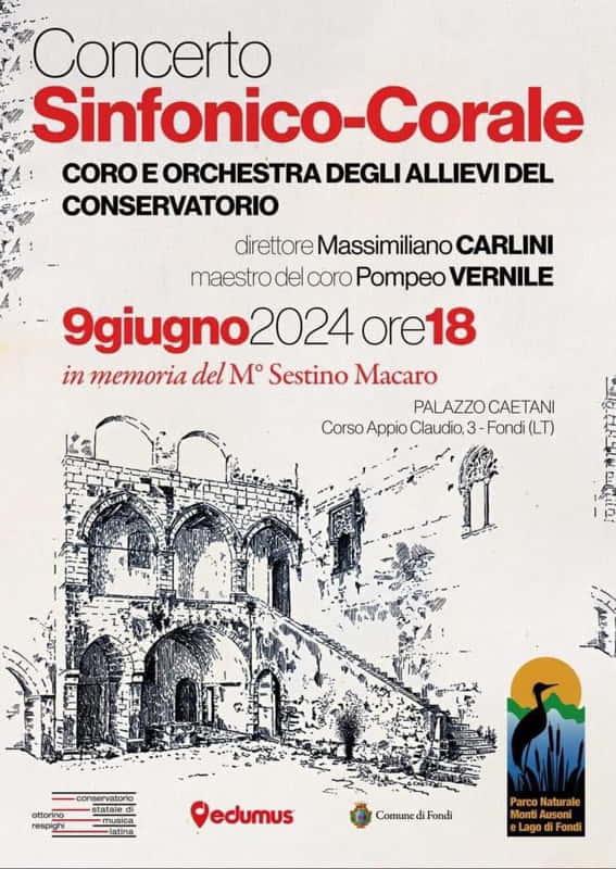 L’appuntamento è in programma il 9 giugno, alle ore 18:00, a Palazzo Caetani, dove si esibiranno il coro e l’orchestra del Conservatorio Statale di Musica "Ottorino Respighi".