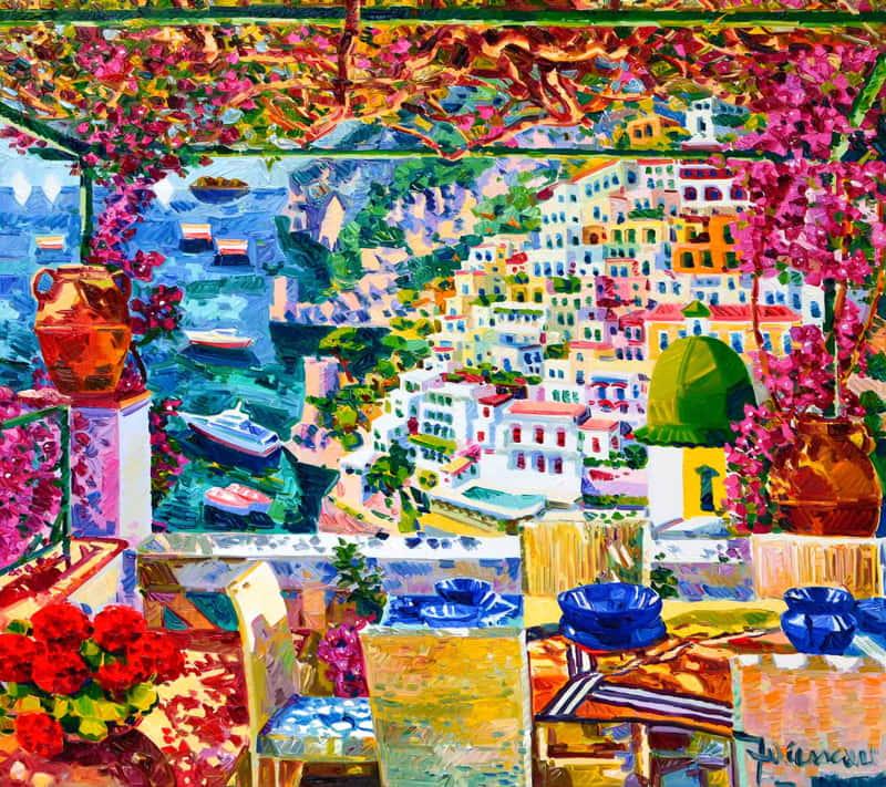 Così Athos Faccincani introduce la sua idea di fare arte, i coloratissimi paesaggi sono una finestra che ci accompagna nella sua immaginazione dove la natura, i paesaggi, le città più belle del mediterraneo vengono rielaborate in base alla sua sensibilità, al suo vissuto, intrise dei suoi desideri futuri e contaminate dal suo stato d’animo.