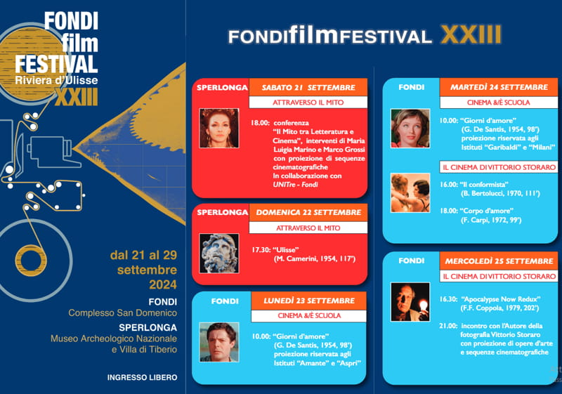 L’ospite d’onore della XXIII edizione del FONDIfilmFESTIVAL - Riviera d’Ulisse è l’esponente del cinema italiano più premiato al mondo. Vittorio Storaro – che alle ore 21.00 di mercoledì 25 settembre presso la Sala Lizzani prenderà parte a un incontro con il direttore artistico del festival Marco Grossi – ha ricevuto circa 180 riconoscimenti internazionali. Oltre ai tre Oscar conferitigli dall’Academy of Motion Picture Arts and Sciences di Los Angeles per “Apocalypse Now” (Francis Ford Coppola, 1979), “Reds” (Warren Beatty, 1981) e “L’ultimo imperatore” (Bernardo Bertolucci, 1987), nell’arco della sua carriera ha fatto incetta di premi dalle più importanti Accademie cinematografiche – quella italiana con i David di Donatello, inglese con i BAFTA, spagnola con i Goya, americana con gli Emmy Awards ed europea con i Cinematography Awards – oltre ad aver ricevuto quattro lauree honoris causa.