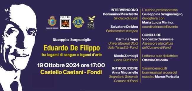 L’attore, l’autore e l’uomo: c’è tutto questo e molto altro nella monografia “Eduardo De Filippo tra legami di sangue e legami d’arte” che sarà presentata il prossimo 19 ottobre presso la sala conferenze del Castello Caetani.