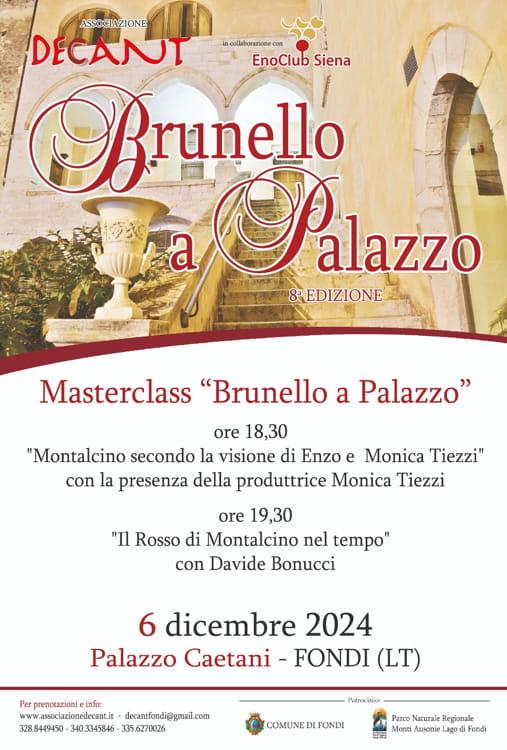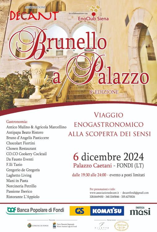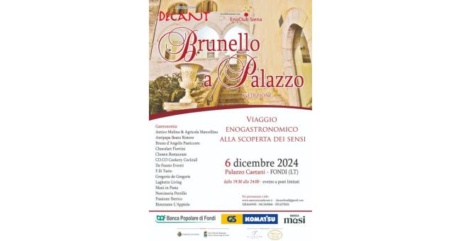 Torna Brunello a Palazzo, l’evento firmato Associazione Decant, che porta a Fondi (LT) il Brunello di Montalcino, abbinandolo alle eccellenze gastronomiche del territorio pontino.