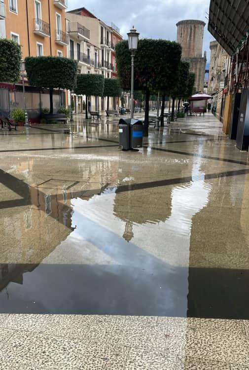 Via Stazione in particolar modo, con più di una traversa in condizioni assai complicate, ma anche Piazza Domenico Purificato, Piazzale delle Regioni, Via San Sossio, Viale Vittorio Emanuele III, Via Casetta Ugo, Via Fosselle Sant’Antonio, il parcheggio sotterraneo di Piazza Municipio, alcuni istituti scolastici, parcheggi a ridosso di abitazioni private, ecc… da ore sono inaccessibili. Tanto da rendere necessaria la chiusura al traffico veicolare.