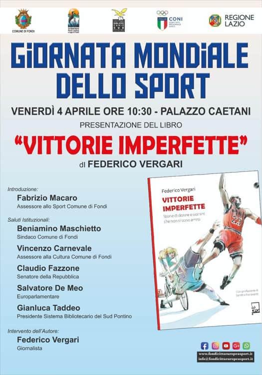 Protagonista di una mattinata dedicata ai più autentici valori dello sport, ma anche alla lettura e alla riflessione, il giornalista Federico Vergari che presenterà, dinanzi ad una platea di studenti delle scuole superiori, il suo ultimo lavoro: “Vittorie Imperfette – Storie di donne e di uomini che non si sono arresi” (Lab DFG).