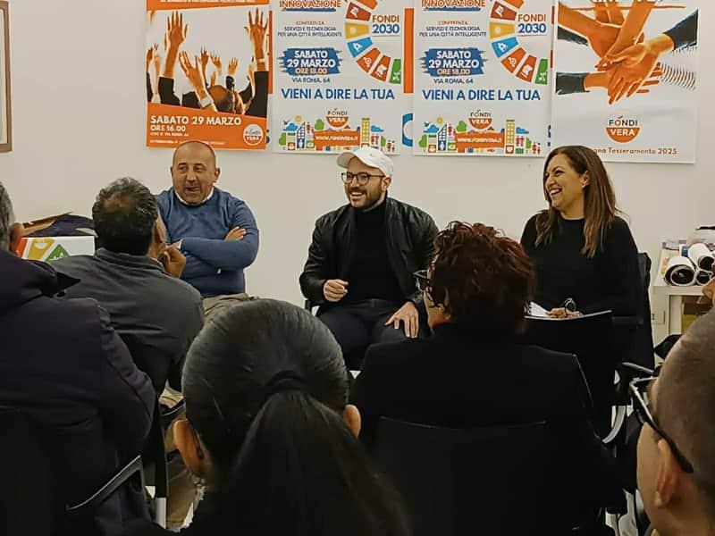 La Conferenza dal titolo “Servizi e tecnologia per una Città intelligente”, introdotta dalla relazione dello specifico Gruppo di Lavoro illustrata dalla Portavoce Tina Di Fazio, ha registrato gli interventi di imprenditori, giovani studiosi, rappresentanti istituzionali e numerosi Cittadini. Francesco Ciccone, Capogruppo Consiliare di Fondi Vera, ha chiuso i lavori preannunciando i prossimi appuntamenti promossi dal Movimento, ed in particolare l’ultima tappa di Fondi 2030 che sarà dedicata all’Urbanistica ed allo Sviluppo del Territorio con il coinvolgimento di addetti ai lavori e associazioni di categoria.