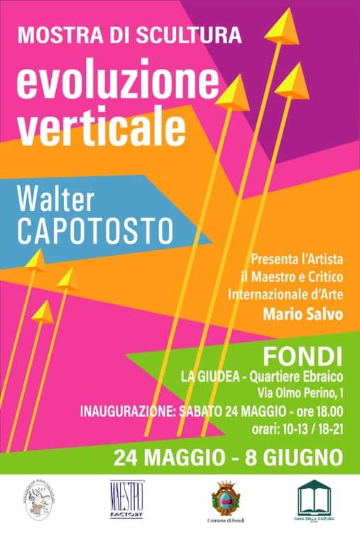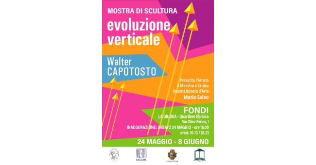 L'Associazione Musicinecultura APS istituisce ed organizza una personale d'arte di scultura dell’artista Walter Angelo Capotosto dal titolo 'Evoluzione Verticale', la cui inaugurazione avverrà nella giornata di sabato 24 maggio 2025, alle ore 18.00, presso La Giudea, il Quartiere Ebraico di Fondi (LT). Presenterà l’artista il Maestro e Critico Internazionale d’Arte Mario Salvo.