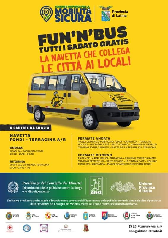 Non appena abbiamo appreso di questa opportunità – aggiunge il vicepresidente della Provincia di Latina nonché consigliere comunale di Fondi Vincenzo Mattei – lo abbiamo sposato e abbiamo iniziato a lavorare per renderlo il più funzionale possibile. Dalle fermate, agli orari: abbiamo cercato di plasmare l’iniziativa in base a quelle che sono le abitudini e le esigenze dei nostri ragazzi. L’auspicio è che la navetta venga utilizzata al massimo delle sue possibilità.