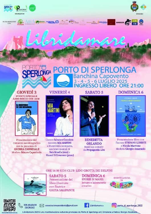 Da giovedì 3 a domenica 6 luglio Libridamare a Sperlonga riapproda sulla terraferma portandosi dietro uno scrigno colmo di cultura, note, comicità ed educazione ambientale.