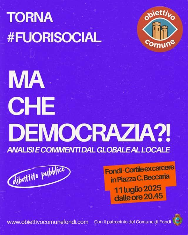 Domani, venerdì 11 luglio a partire dalle 20.45 presso l'ex carcere Cesare Beccaria di Fondi, si svolgerà l'evento firmato dall'Associazione Obiettivo Comune dal titolo #fuorisocial.
