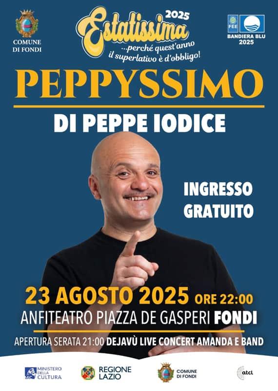 “Peppissimo”, lo spettacolo che sarà proposto al pubblico di Piazza De Gasperi, è pensato per divertire ma anche far riflettere. La missione dello show è infatti portare da Nord a Sud dello Stivale lo spirito goliardico e pirotecnico del Peppy Night: il programma televisivo campione di ascolti. Accompagnato da Francesco Mastandrea, suo compagno di scena anche in TV, Peppe mette sotto la sua personale lente d'ingrandimento le paure, le preoccupazioni, i problemi che caratterizzano l’attuale periodo storico, ma anche la possibilità di vivere un momento di leggerezza e di evasione grazie ad uno show colorato e ricco di sorprese.