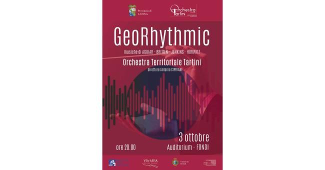 Nuovo straordinario appuntamento con la musica a Fondi dove venerdì 3 ottobre, con inizio alle 19:30, presso l’auditorium comunale “Sergio Preti” si esibirà l’Orchestra territoriale “Tartini” di Latina diretta dal Maestro Antonio Cipriani. GeoRhythmic, questo il titolo del concerto, sarà un viaggio nello spazio e nel tempo. Il programma prevede infatti brani composti dal brasiliano Ernani Henrique Chaves Aguiar, del britannico Edward Benjamin Britten, del gallese Karl Jenkins e dello statunitense Justin Hurwitz.