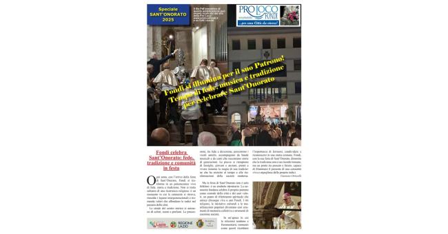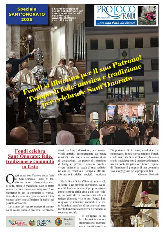 Questa edizione celebra la festa patronale di Sant’Onorato, momento che ogni anno trasforma la città di Fondi in un palcoscenico di fede, storia e tradizione. Le pagine raccontano la memoria collettiva, i riti religiosi e le iniziative popolari che uniscono la comunità fondana e ne custodiscono l’identità.