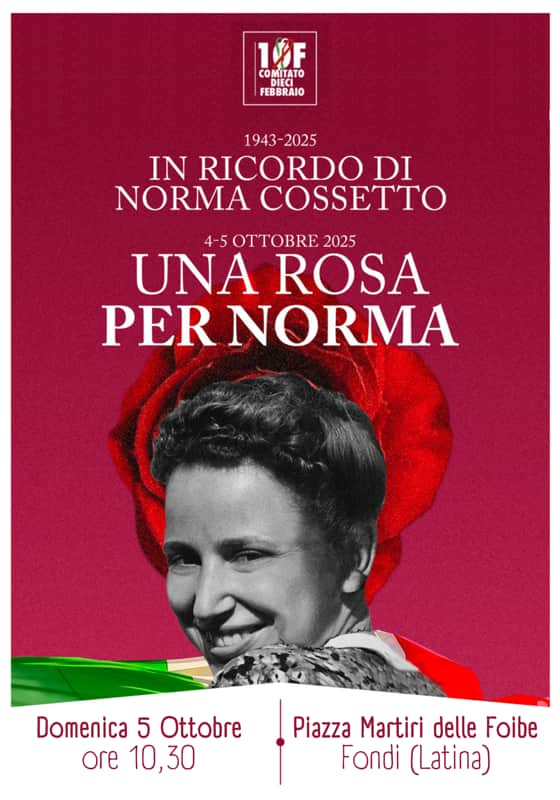 Deporremo una rosa e racconteremo la sua vita e la sua tragica fine, luminosa testimonianza di coraggio e amor patrio. Medaglia d’Oro al Merito Civile conferita nel 2005 dal Presidente della Repubblica Carlo Azeglio Ciampi, Norma sarà ricordata in Piazza Martiri