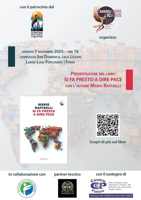 Vogliamo dare il nostro contributo per trovare risposte portino alla risoluzione dei problemi, e l’esperienza di Mario Raffaelli può essere una di questa, dichiarano i responsabili dell’associazione Icarus che organizzano l’evento, portando a Fondi una persona di prestigio, con competenza internazionale, che ci aiuterà a comprendere meglio la realtà internazionale e i suoi riflessi nel nostro quotidiano.