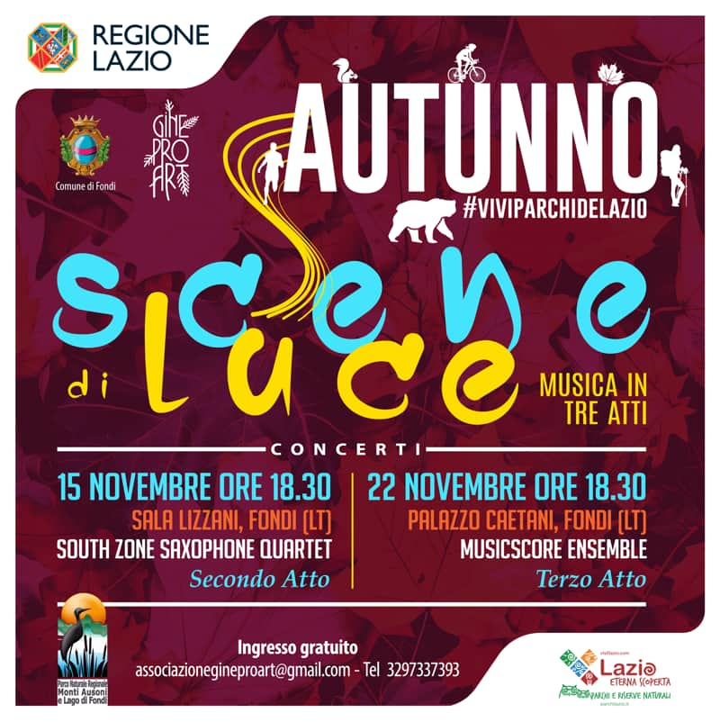 Con il patrocinio e la collaborazione dell’Ente Parco Regionale Naturale Monti Ausoni e Lago di Fondi, nell’ambito di “Autunno, Vivi Parchi del Lazio”, e del Comune di Fondi.