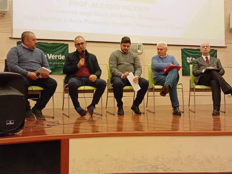 In circa due ore si sono succeduti gli interventi del Prof. Alessio Valente dell'Università del Sannio di Benevento e Vice Direttore Pastorale Sociale Diocesi di Gaeta, del più giovane Sindaco della Provincia di Latina, Tommaso Grossi, primo Cittadino di Campodimele, del Dott. Raniero De Filippis. che coordina il Corso "La Cura del Creato" presso l'Università della Terza Età di Fondi, e dell'Architetto Ermenio Corina, Direttore del Parco Naturale Regionale Monti Ausoni e Lago di Fondi che ha concesso il Patrocinio all'iniziativa. Nella seconda parte della Conferenza sono arrivati i contributi di Tina Di Fazio, Referente locale dell'Associazione Plastic Free, Angela Renzitelli Responsabile dell'Azione Cattolica per la Parrocchia di Santa Maria, e Massimiliano Punzo, Presidente dell'Associazione Wilderness AIW Monte San Biagio.