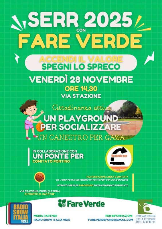 L'iniziativa porta il nome di "Un canestro per Gaza" e ci vedrà impegnati insieme al Comitato Pontino di Un Ponte per. Proporremo giochi e svago per chi vorrà essere dei nostri, e allo stesso tempo ci occuperemo di restituire un minimo di decoro ad uno dei pochissimi spazi pubblici in cui poter fare sport gratuitamente in Città, un'area purtroppo abbandonata da tempo e che potrebbe essere recuperata con un intervento minimo. Speriamo di dare il là a questo recupero e con l'occasione raccoglieremo fondi da destinare a Un Ponte per con l'obiettivo di portare acqua, cibo e aiuti essenziali alla popolazione palestinese - conclude Milena Trani.